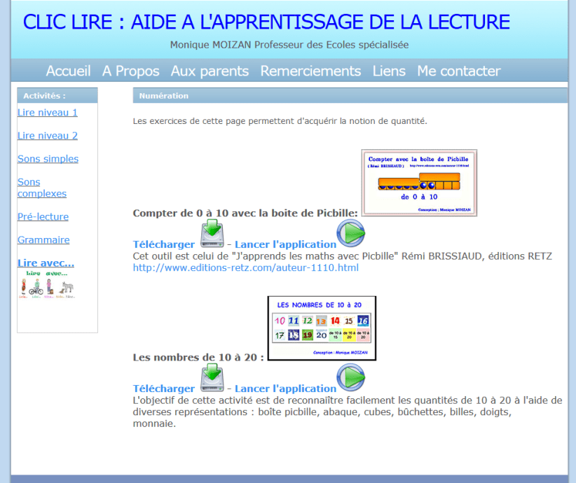 un site très bien fait d’une professeur d’école spécialisée, orienté pour l’essentiel, sur l’apprentissage de la lecture, avec un niveau de difficultés progressif très bien vu pour aider les élèves.![]()