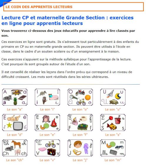 vous trouverez d’innombrables liens vers des activités classées par sons, ce qui peut fortement aider les élèves (et enfants) dans leur apprentissage systématique des sons!! Cela complètera le travail sur fichier effectué chaque jour en classe, notamment au CP.