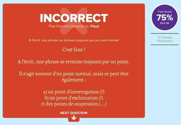 Pour chaque réponse donnée une explication est fournie aux élèves, et ainsi ils peuvent comprendre d’où viennent leurs erreurs, si il y en a:-) La preuve en image: