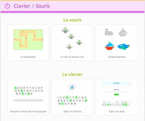 Maîtriser certaines fonctions du clavier et de la souris (6 jeux).