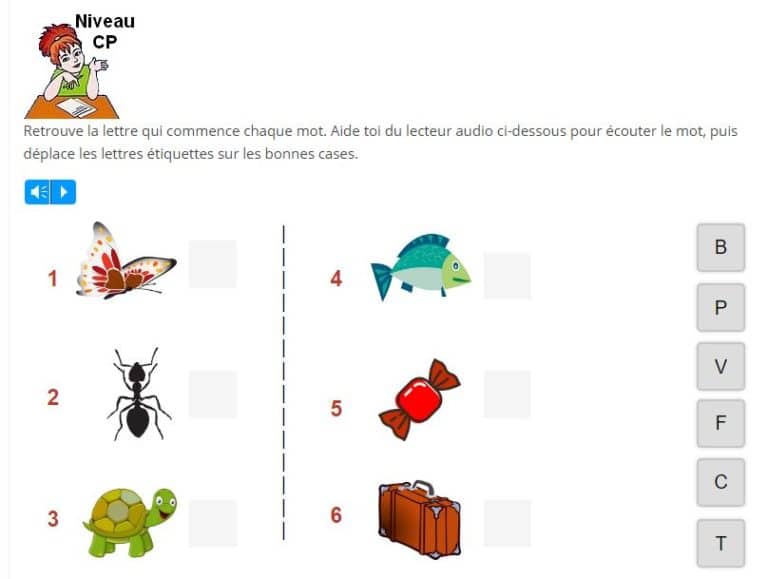 Compléter un mot sous la dictée en écrivant la lettre initiale.